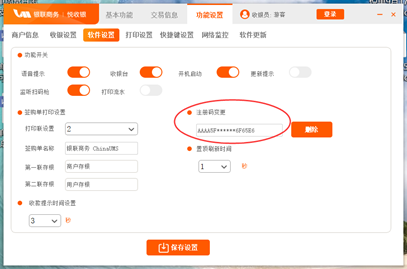 3.X版本中,可以直接在设置里面删除注册码,然后重启悦收银,就会重新出现注册窗口。如图: