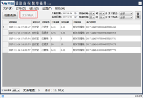 1)、如果是交易成功的,却未打单,显示未支付,可以在主界面点击这笔未支付的订单,点击最上面的订单确认按钮更新订单