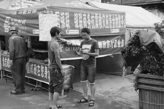 在余震不断的龙泉村,金融服务队用最短时间迅速搭建起了“银联商务‘全民付’抗震救灾应急金融服务点”,金融服务队员们争分夺秒,利用随身携带的“全民付”易POS终端、移动POS终端等无线设备,轮班不间断地为灾区民众及救援部队官兵、志愿者们提供应急取款及手机充值、实时转账、余额查询等应急金融服务,帮助灾区民众度过最困难的时期,为志愿者解决后顾之忧。此外,各金融服务点还特别准备了药品、手电、口罩、雨具等救灾用品及其他日常生活用品,随时为受灾民众提供不时之需。