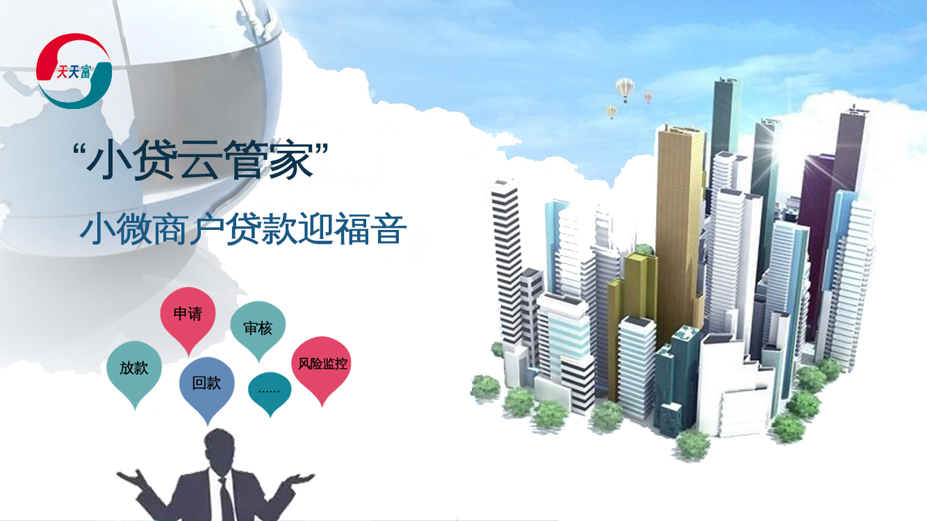 与“天天富”平台上的“POS贷”、“T+0”等融资贷款产品不同,“小贷云管家”不仅可为贷款机构提供授信依据评估、潜在客户导入、大数据分析、风险管控等服务,还可提供线上贷款业务系统支持,将开展线上贷款业务的全流程一网打尽,尤其适用于缺乏在线贷款系统的银行或小贷公司。