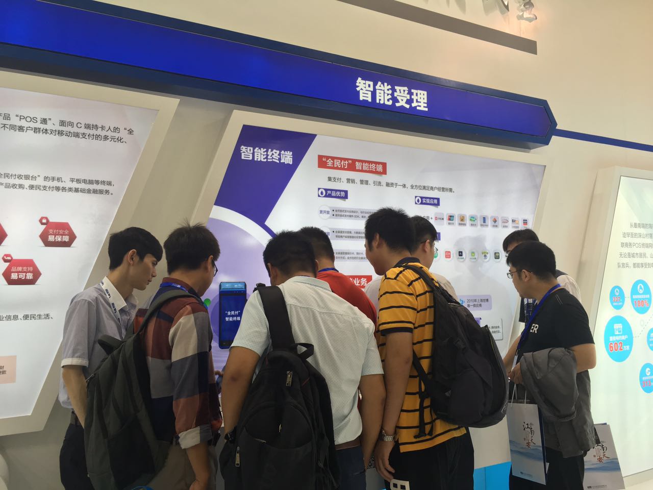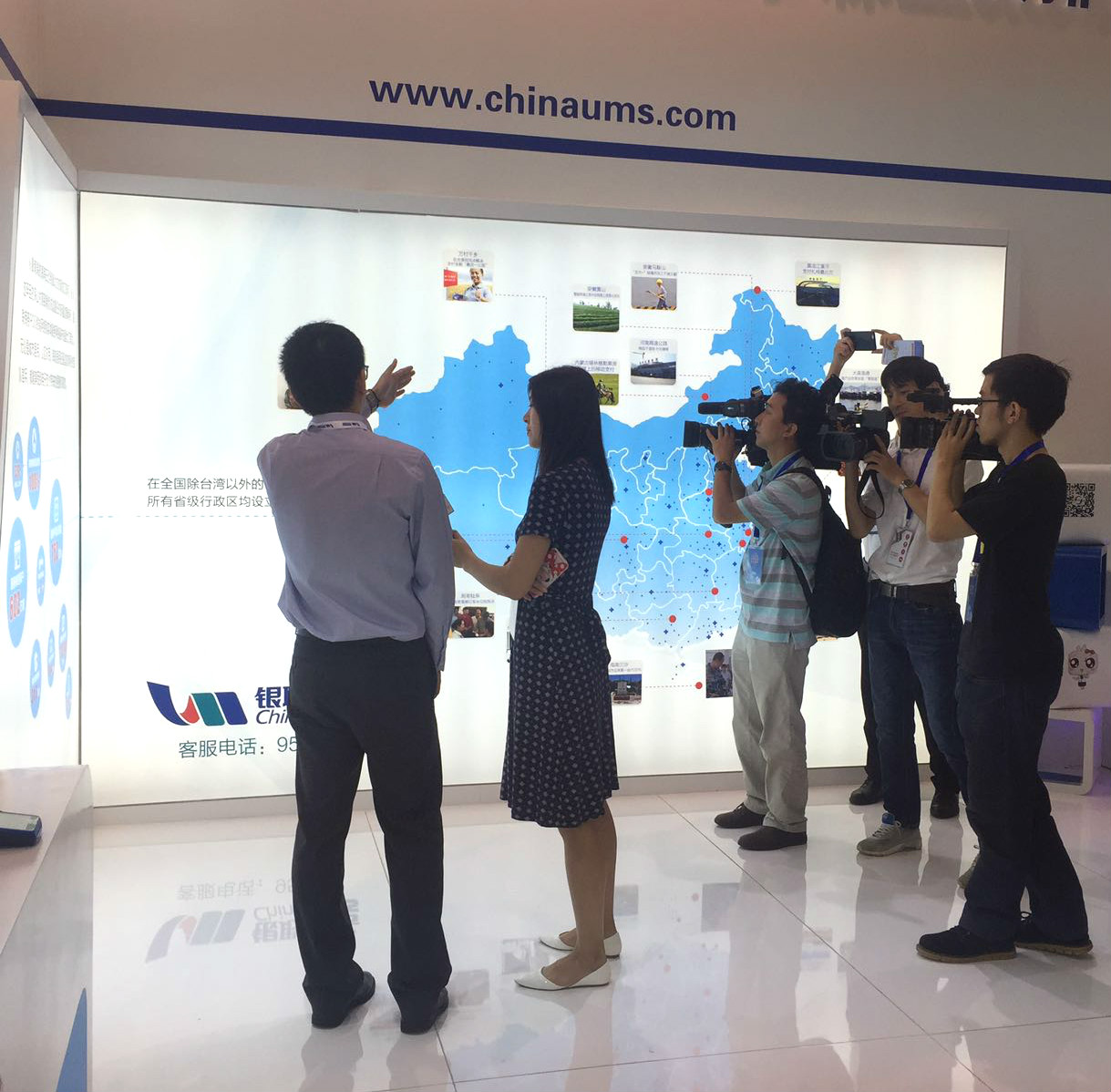 而展台背景墙上一幅恢宏的中国地图也吸引很多观众驻足。原来,这幅中国地图上星罗棋布地标记了银联商务多年来致力于国内电子支付受理环境建设的步履足迹,不仅全部覆盖全国337个地级以上城市,还进一步将服务触角延伸至海南三沙海岛、新疆边防哨所、四川西岭雪山、内蒙古草原等祖国大江南北、五湖四海的每一个角落。