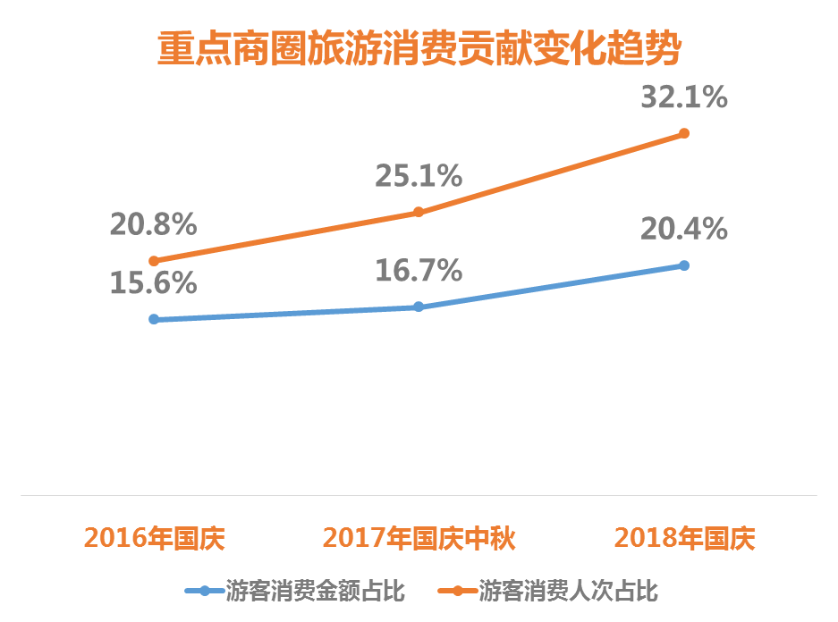 10月8日,银联商务发布《2018国庆旅游消费大数据报告》。报告基于银联商务大数据口径,解读2018年国庆假日中国旅游消费特点,通过旅游消费人数、出游消费热度、旅游消费对商圈贡献、消费人群结构、旅游消费趋势等指标,量化展现了旅游消费与经济发展、城市化进程、居民生活之间的联系。