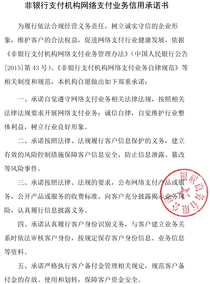 非银行支付机构网络支付业务信用承诺书