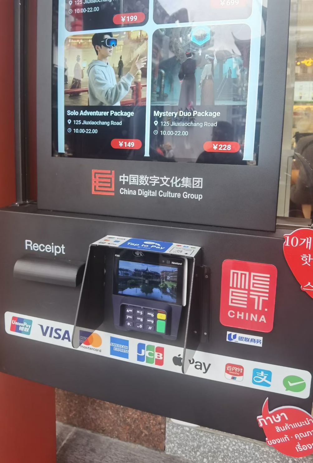 据介绍,本次发布的数字大屏是由银联商务与中国数字文化集团联合研发定制,支持五大国际卡组织的支付终端,创新实现了“挥卡即付,免密免签”服务体验。这也是文旅消费场景中首次落地“国际支付秒通”机制,为入境游客带来与地铁“拍卡即过”一样丝滑的消费体验。消费完成后,游客凭核销券可在对应门店领取实物,还能通过配套APP随时回看商品文化故事,真正实现“购买即传播”的文化传播与消费联动效应。