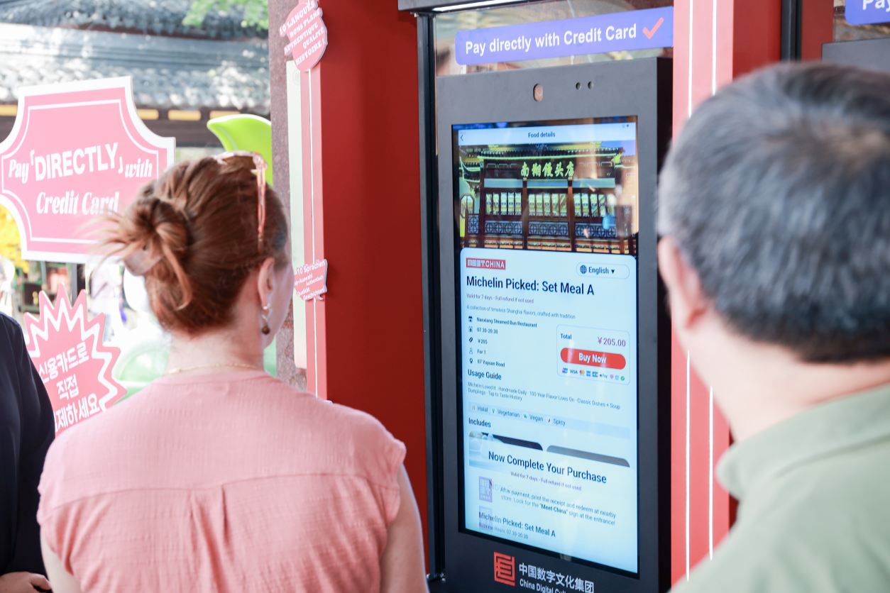 9月27日上午,全国首个面向外籍游客的文旅消费自助系统——“Meet China”入境旅游消费数字大屏在上海豫园正式启动。该项目在文化和旅游部产业发展司、国际交流与合作局的指导下,在上海市文化和旅游局、上海市黄浦区政府的大力支持下,中国数字文化集团联合上海师范大学、银联商务共同打造,以上海豫园作为全国首站首发地点,率先在文旅消费终端场景中解决入境旅游“最后一公里”的服务痛点,通过数字化方式为入境游客带来更直观、更便捷、更具文化温度的支付消费体验。