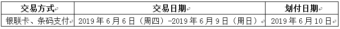 2019年6月6日至2019年6月9日的交易资金,于6月10日合并划付。