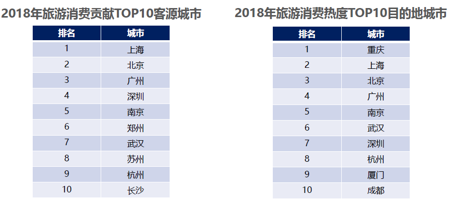 从客源城市来看,上海居民旅游消费总金额最高;从目的地城市来看,重庆当地旅游消费最热。