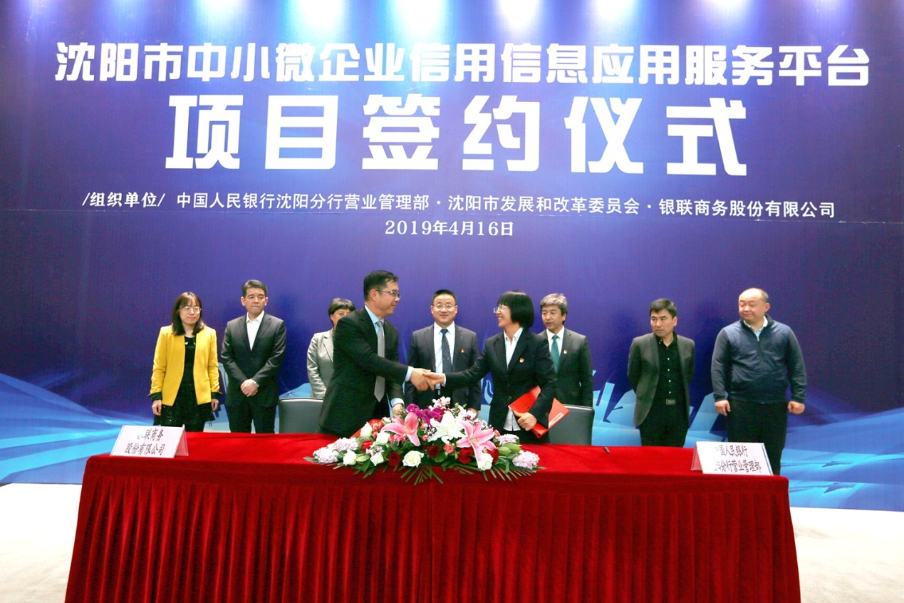 2019年4月16日,沈阳市中小微企业信用信息应用服务平台项目签约仪式在中国人民银行沈阳分行营业管理部(下简称“人行沈阳分行营管部”)成功举办。人行沈阳分行营管部与银联商务股份有限公司(下简称“银联商务”)基于各自优势,以沈阳市“中小微企业信用信息应用服务平台”为依托,正式签署加快推进沈阳市中小微企业普惠金融服务发展战略协议。